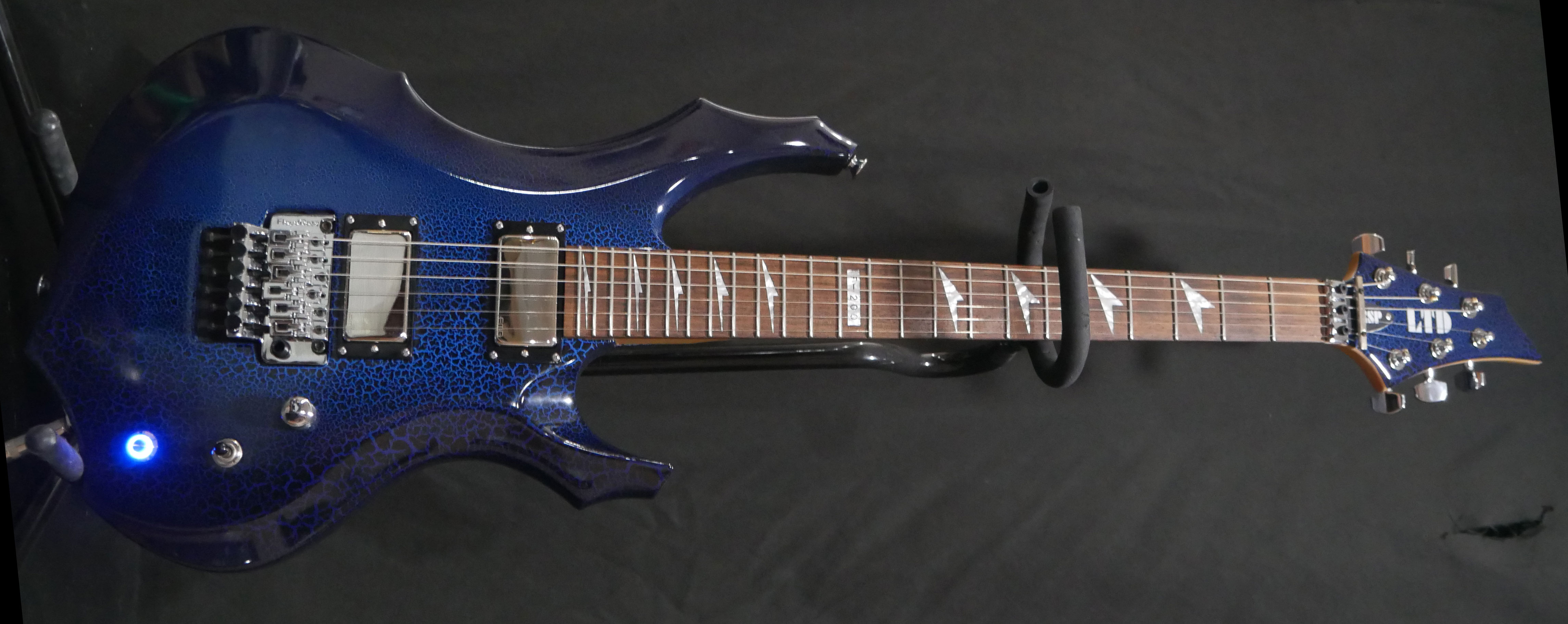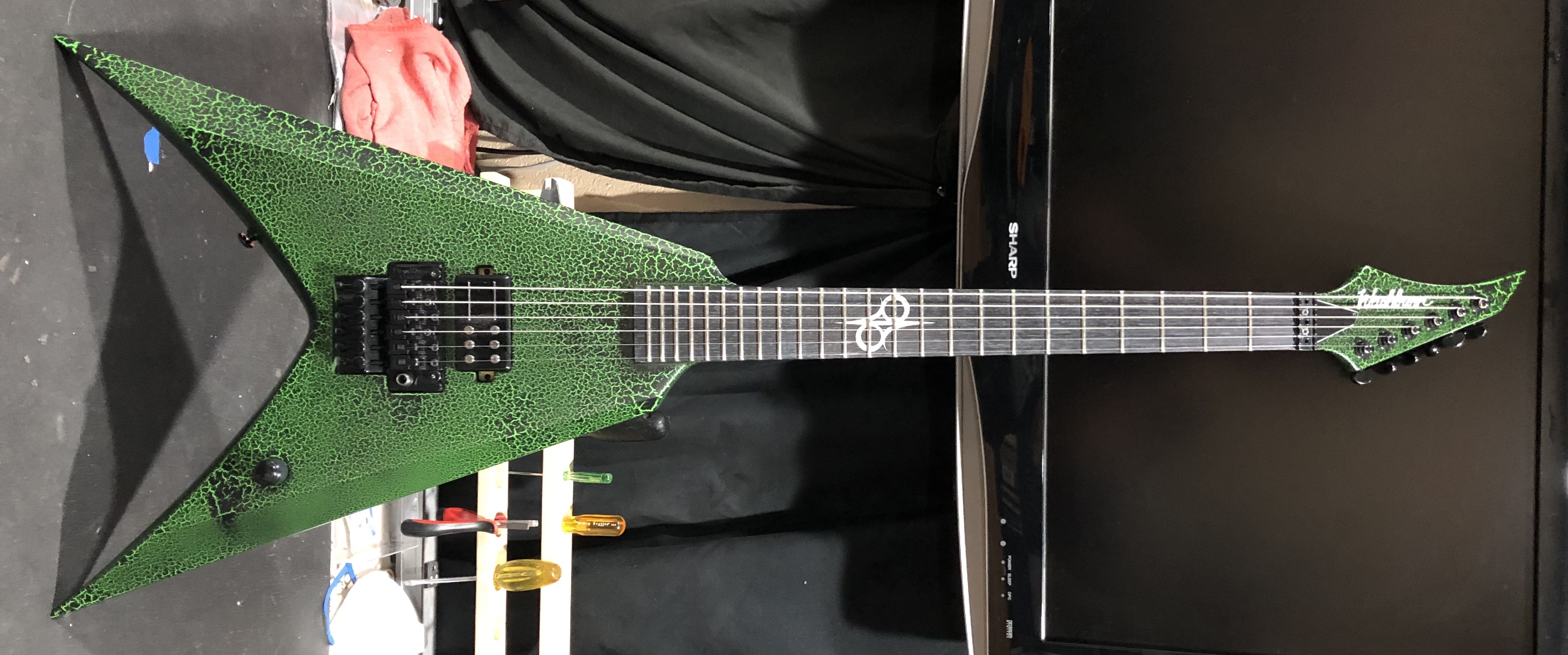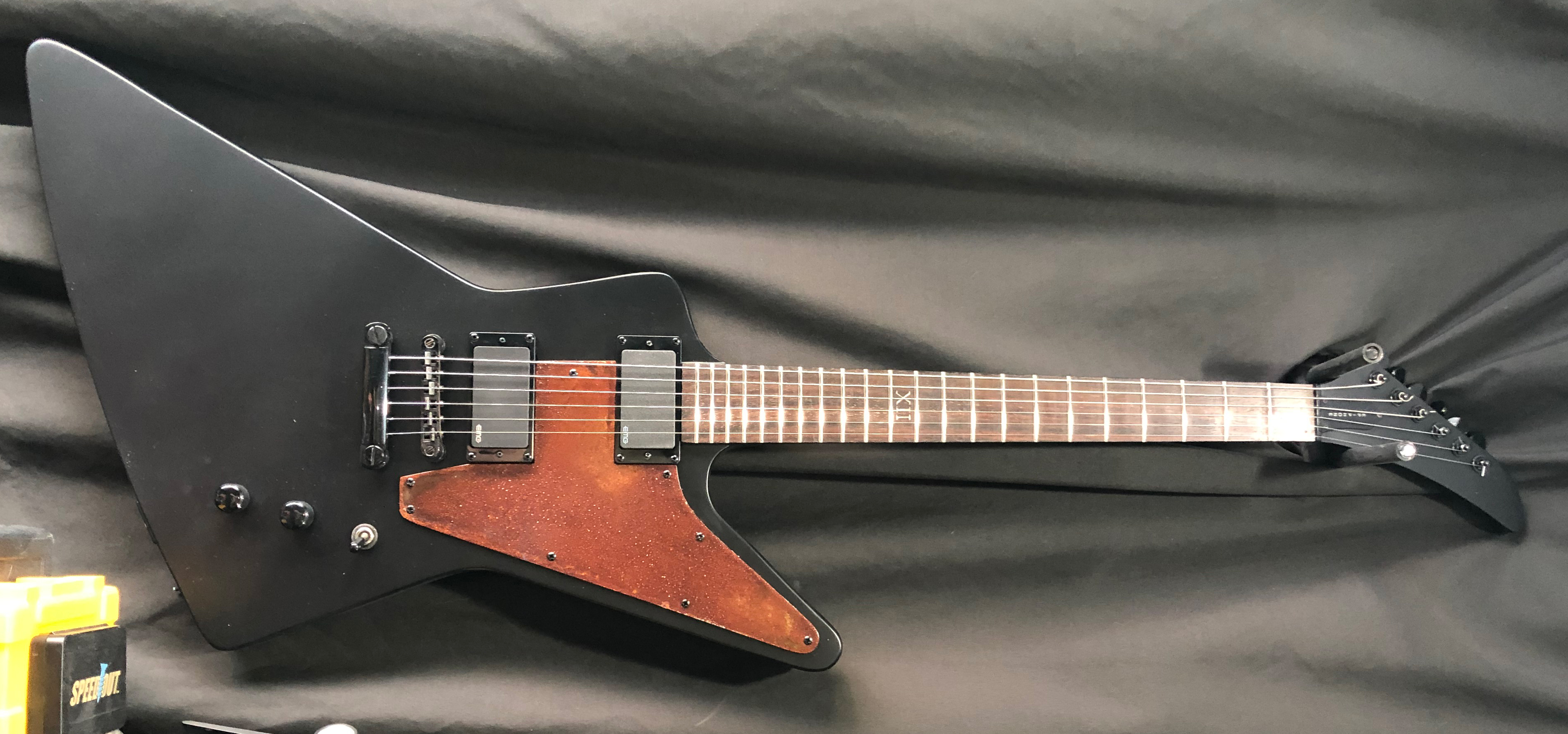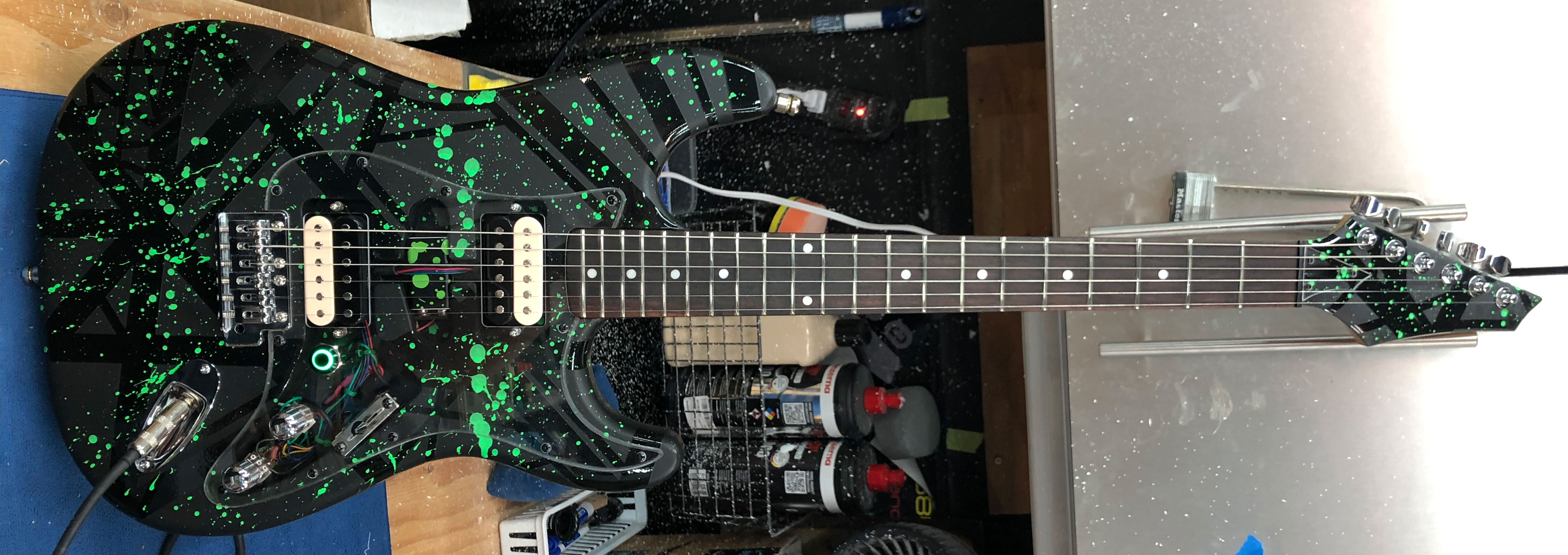 EMG Bone Breaker set (Kirk Hammett Signature) pickups, Iron Age LED Killswitch, Custom Clear pickguard & bridge, Gotoh Battery Box