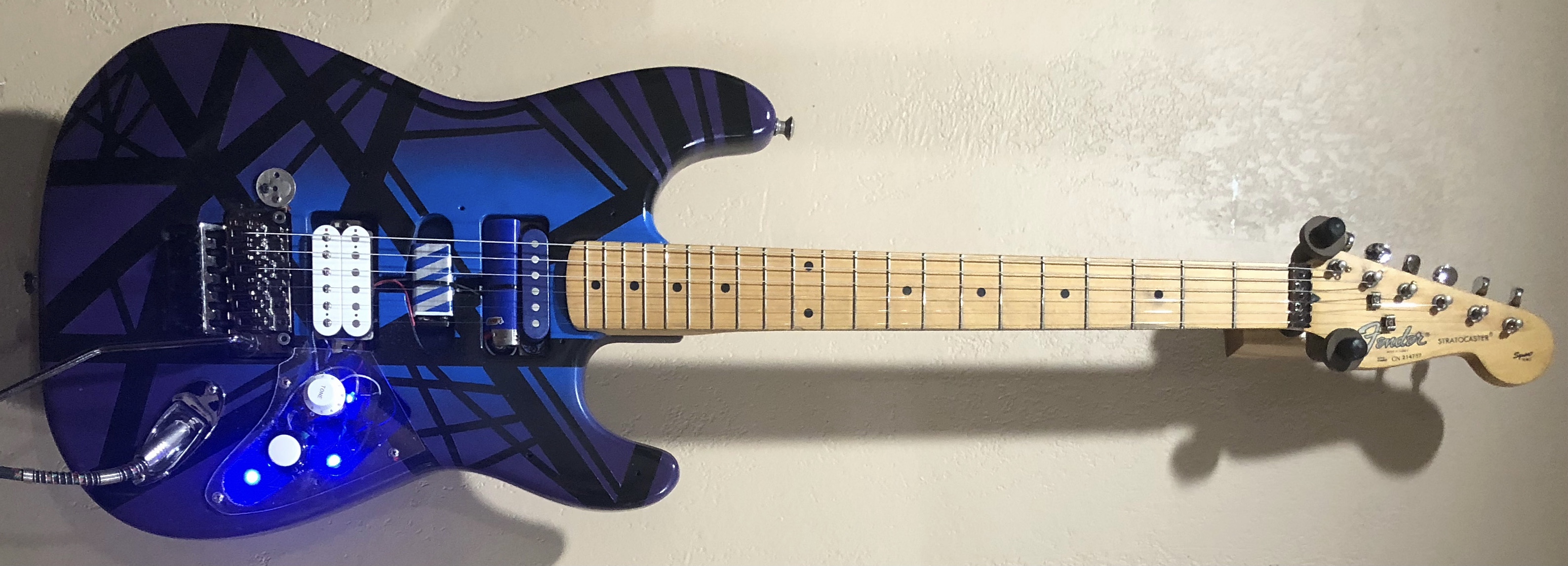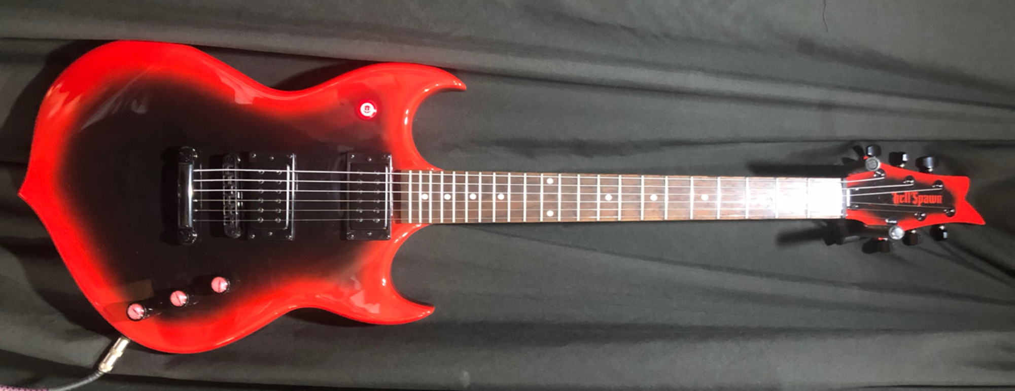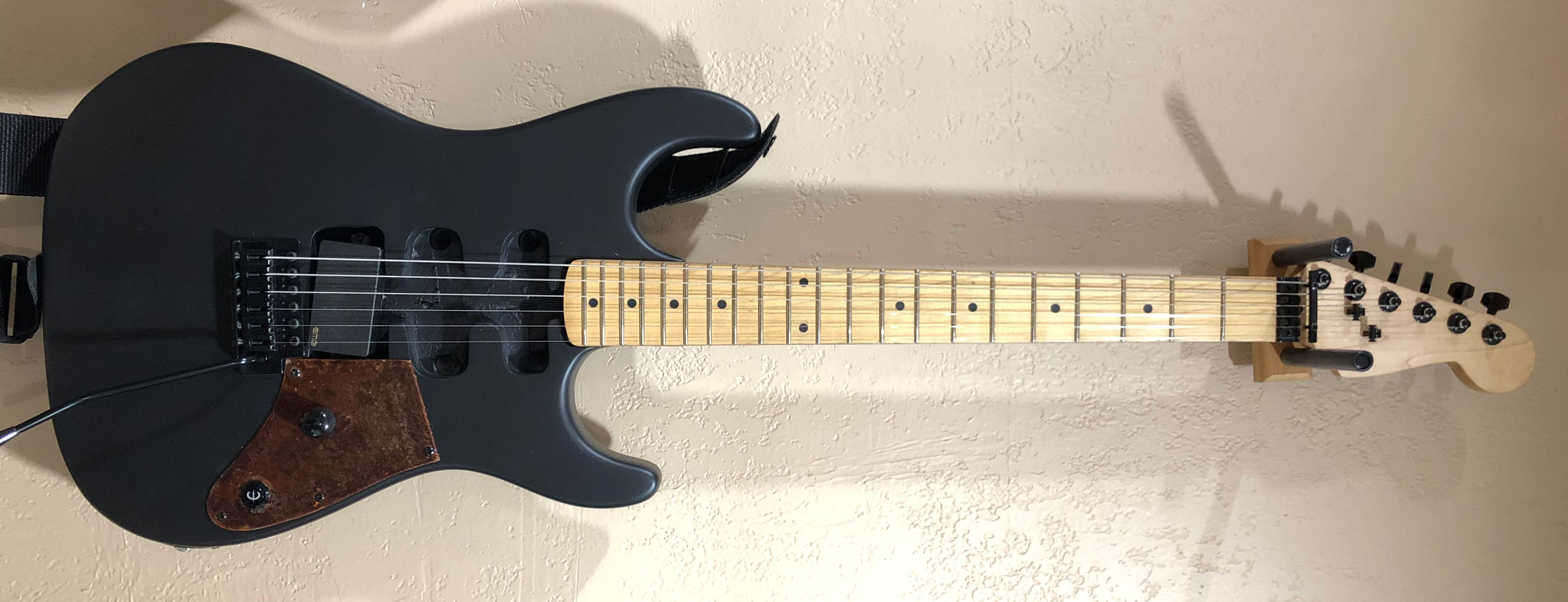 EMG Bone Breaker set (Kirk Hammett Signature) pickups, Iron Age LED Killswitch, Custom Clear pickguard & bridge, Gotoh Battery Box