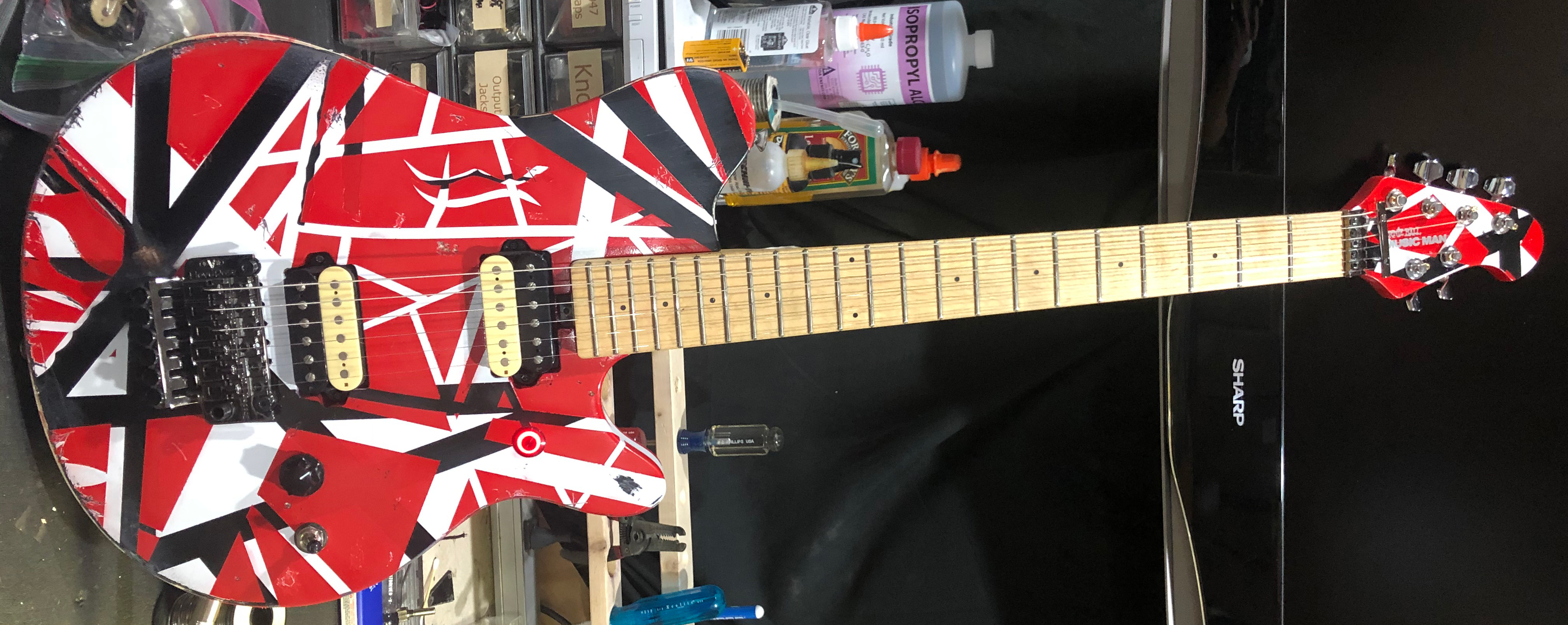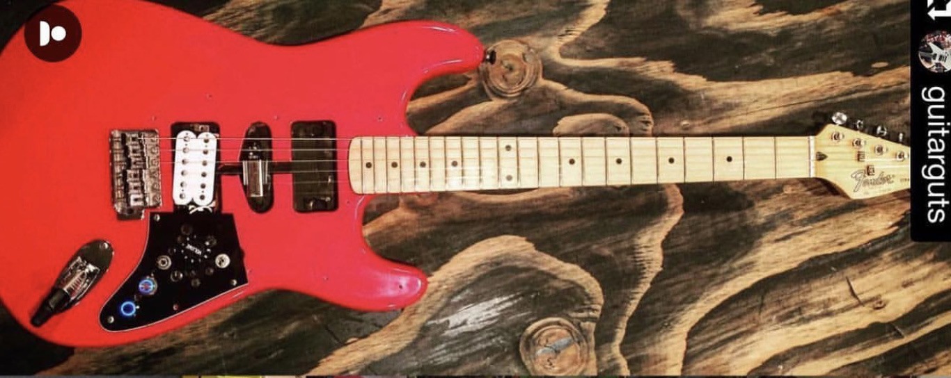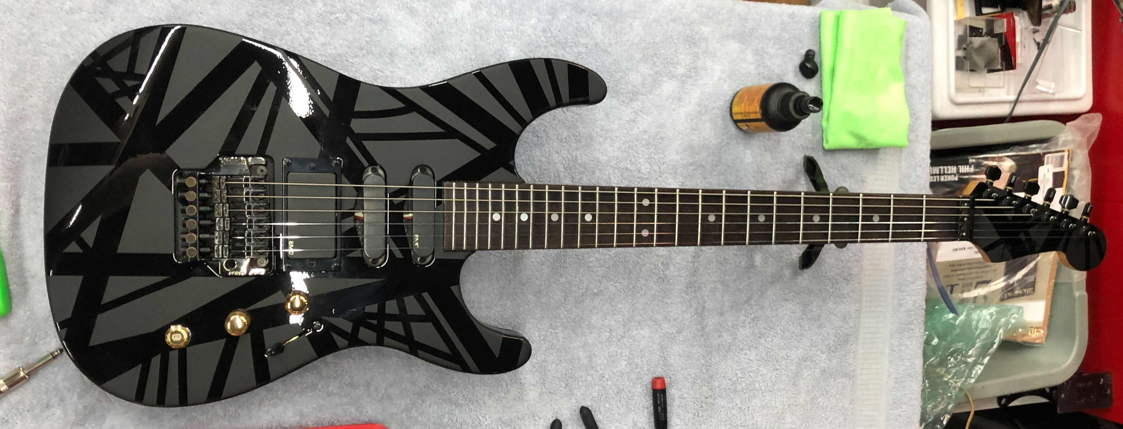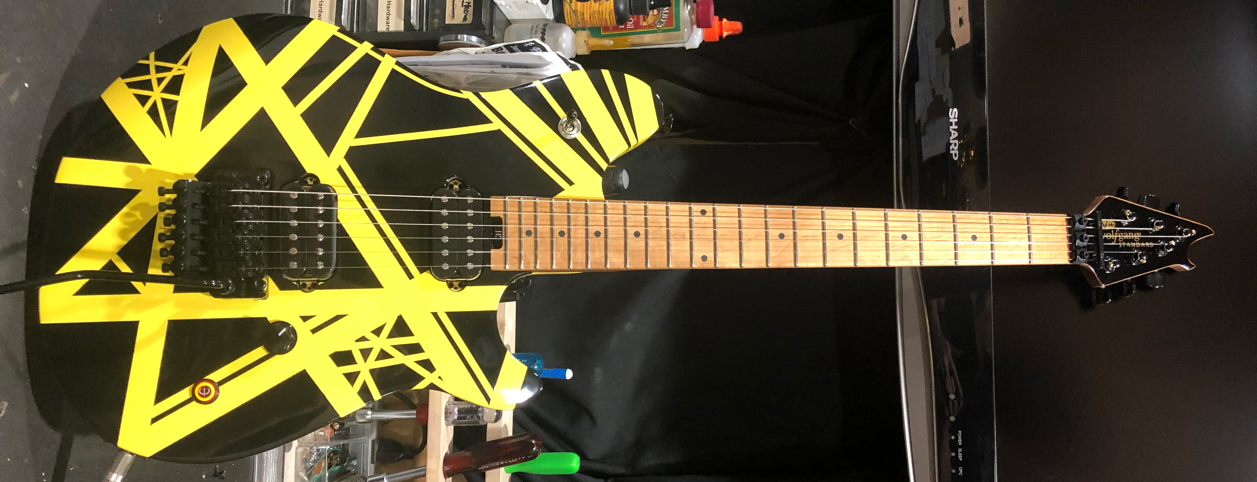 EMG Bone Breaker set (Kirk Hammett Signature) pickups, Iron Age LED Killswitch, Custom Clear pickguard & bridge, Gotoh Battery Box