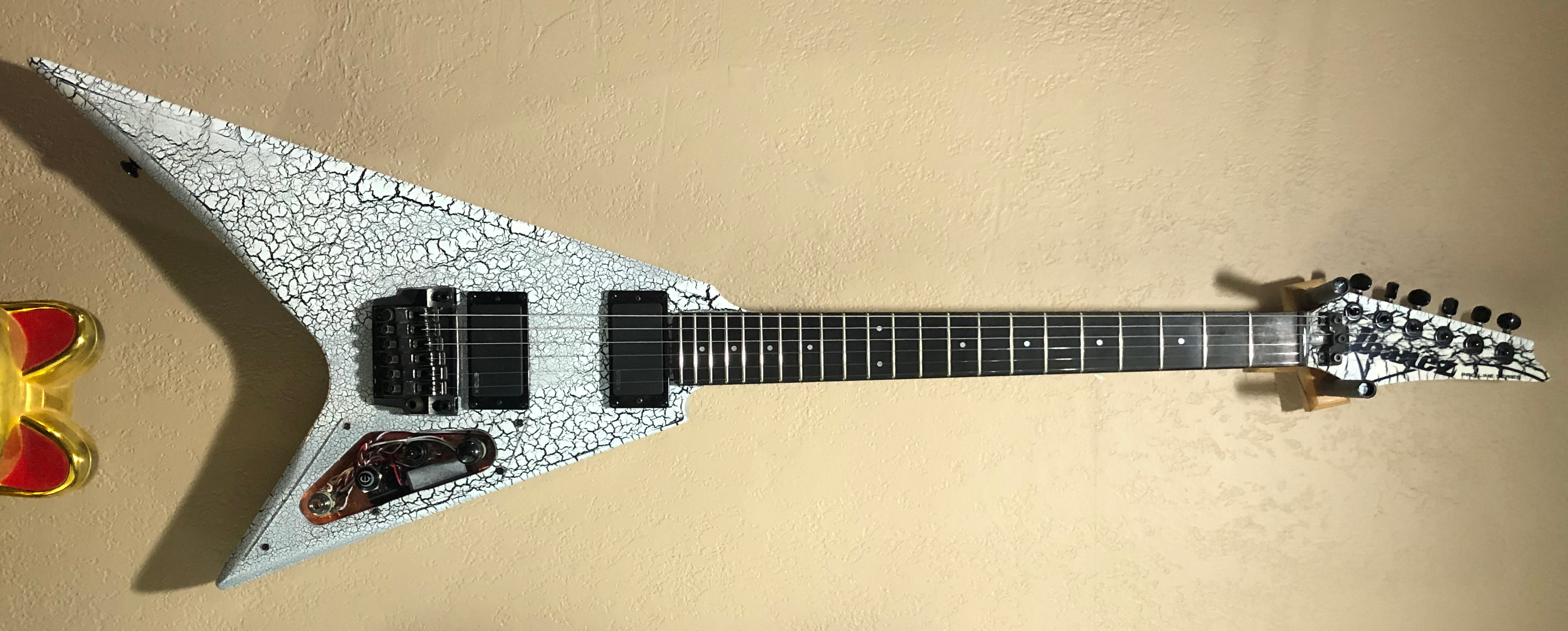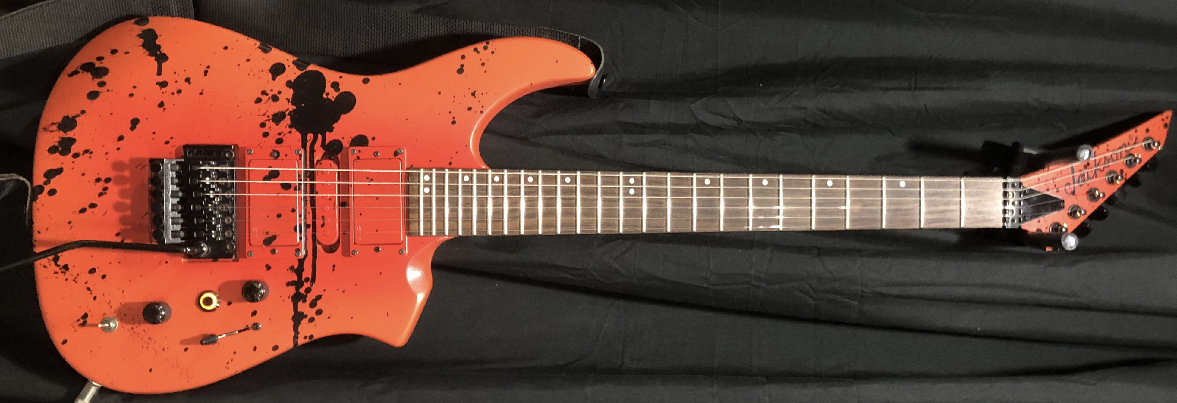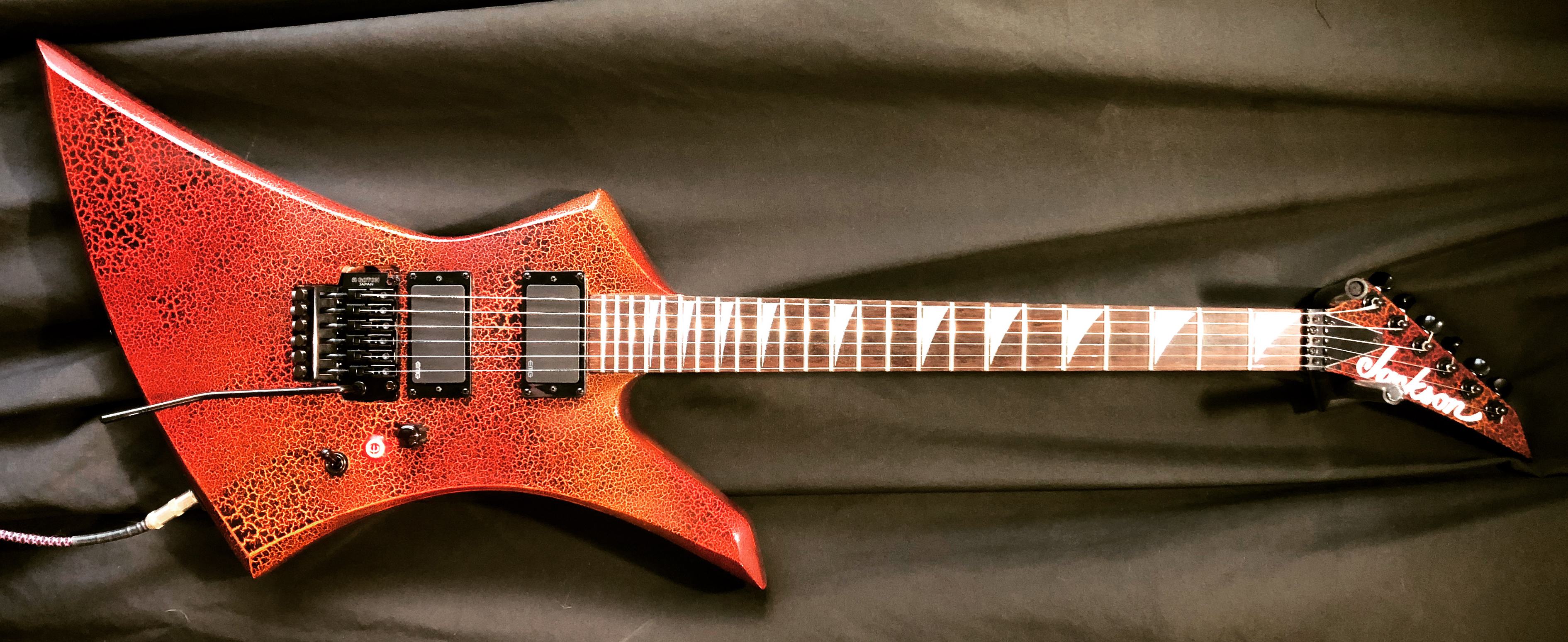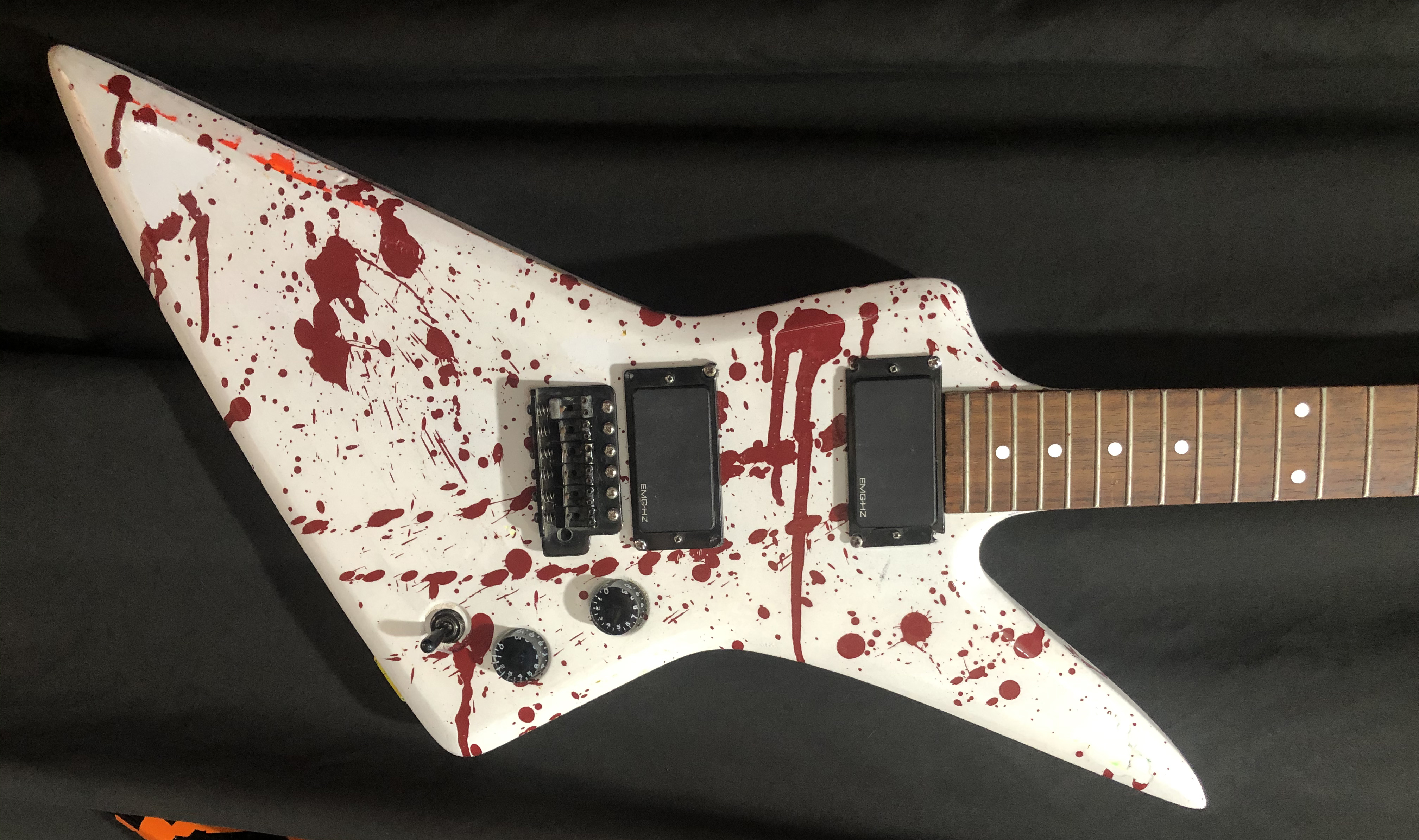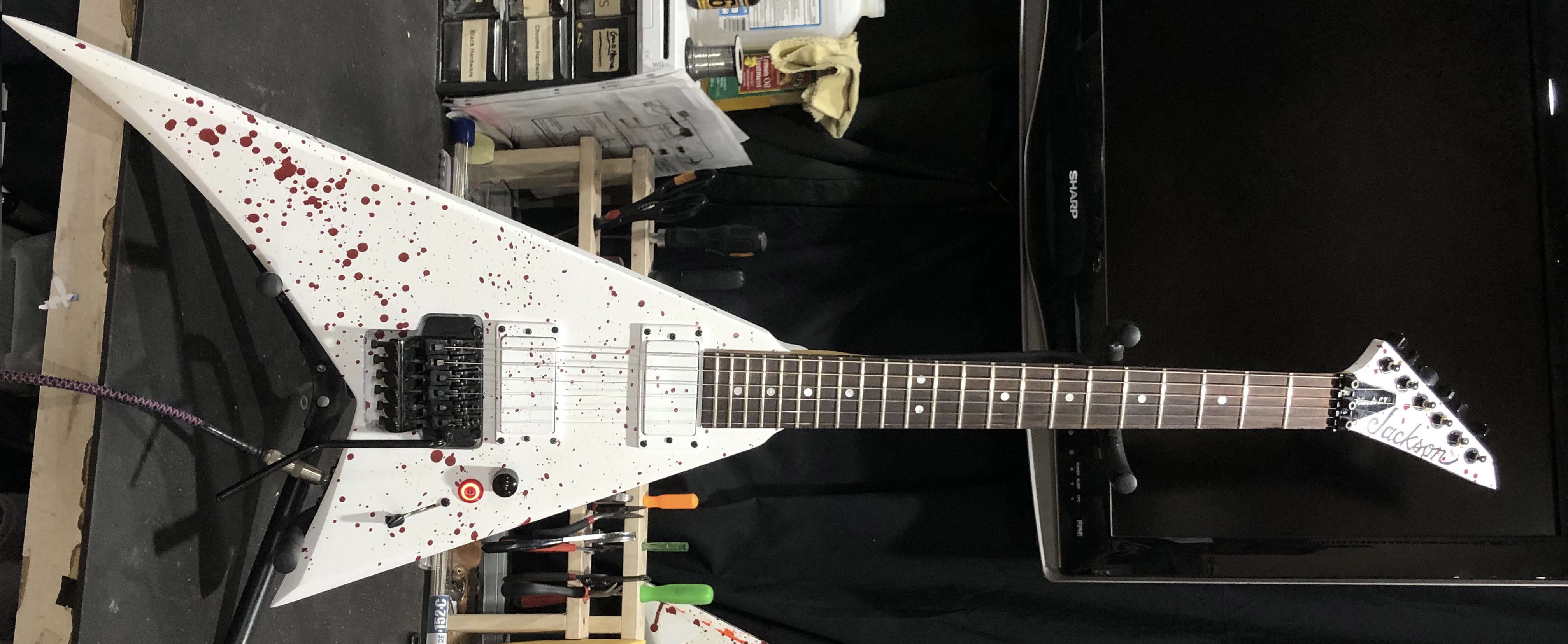 1992 Jackson EX Pro Rhoads w/ EMG 81-85 pickups, Iron Age LED Killswitch, Gotoh Battery box, White Satin w/ Red Splatter