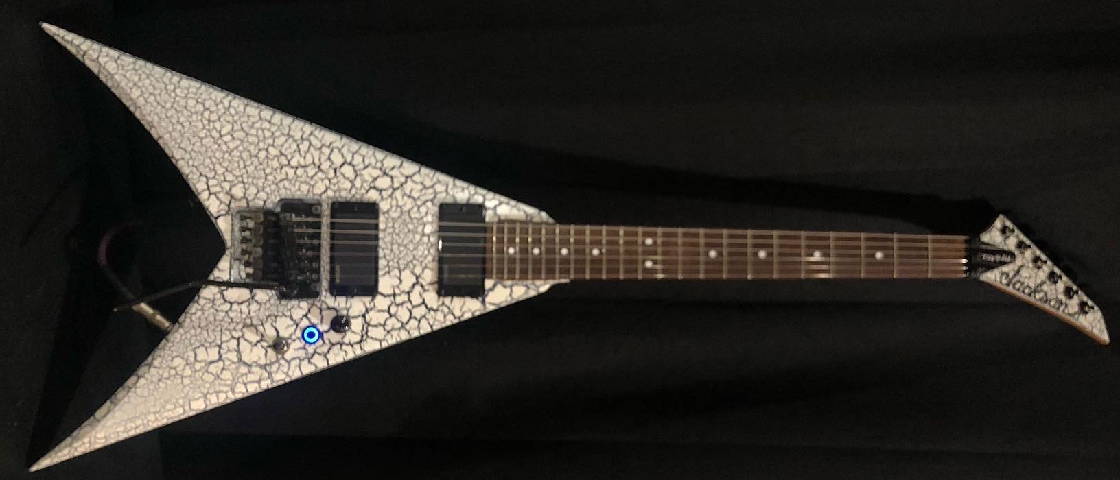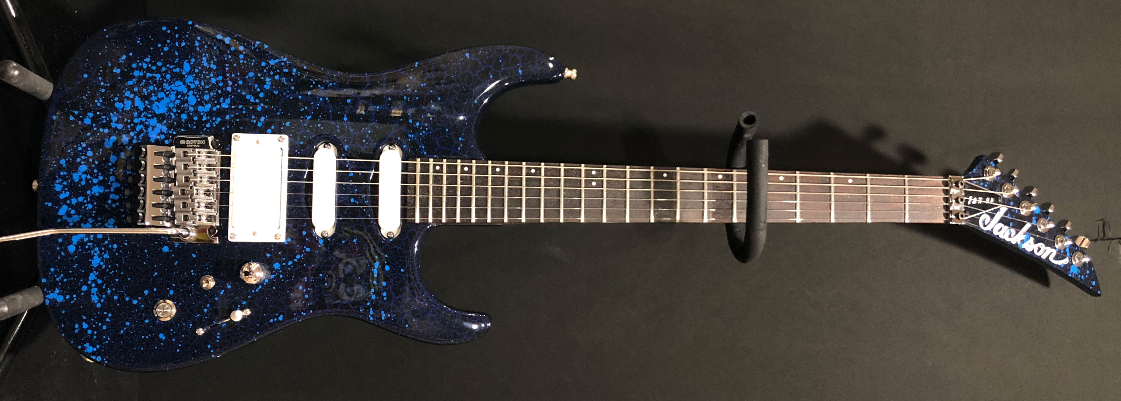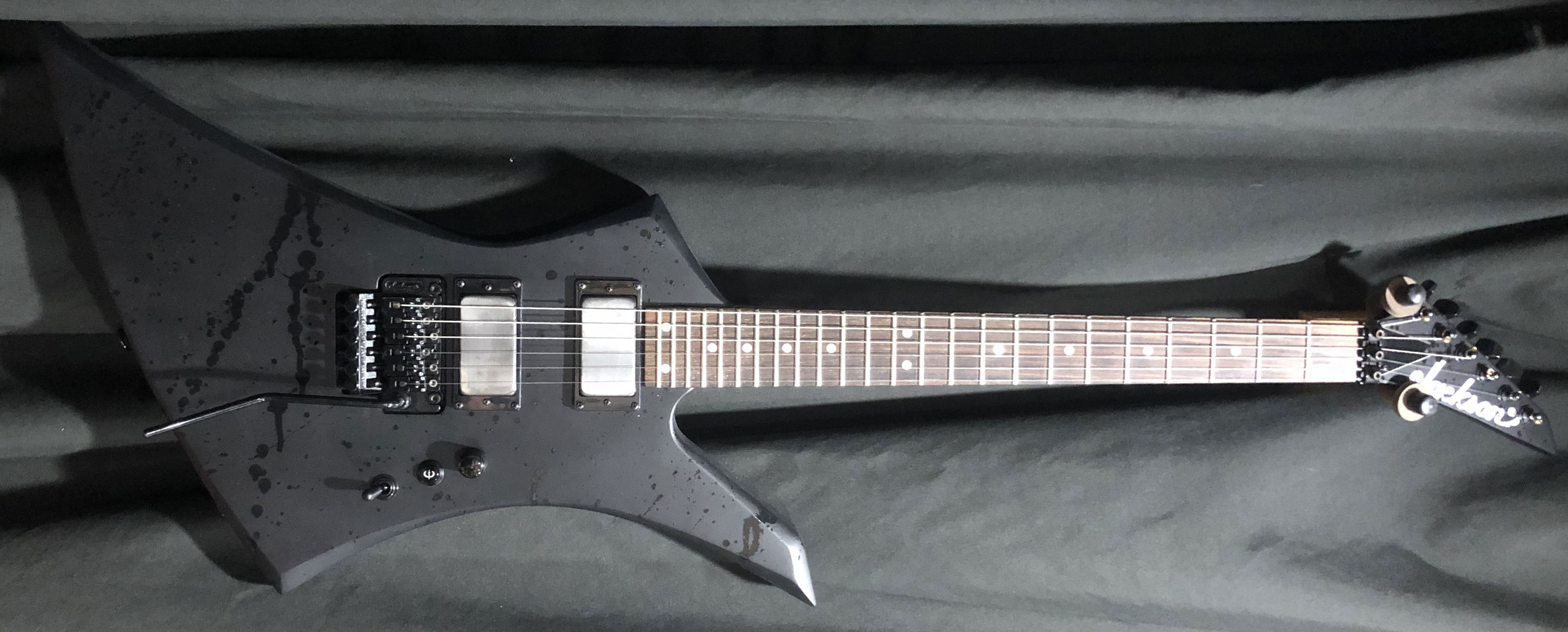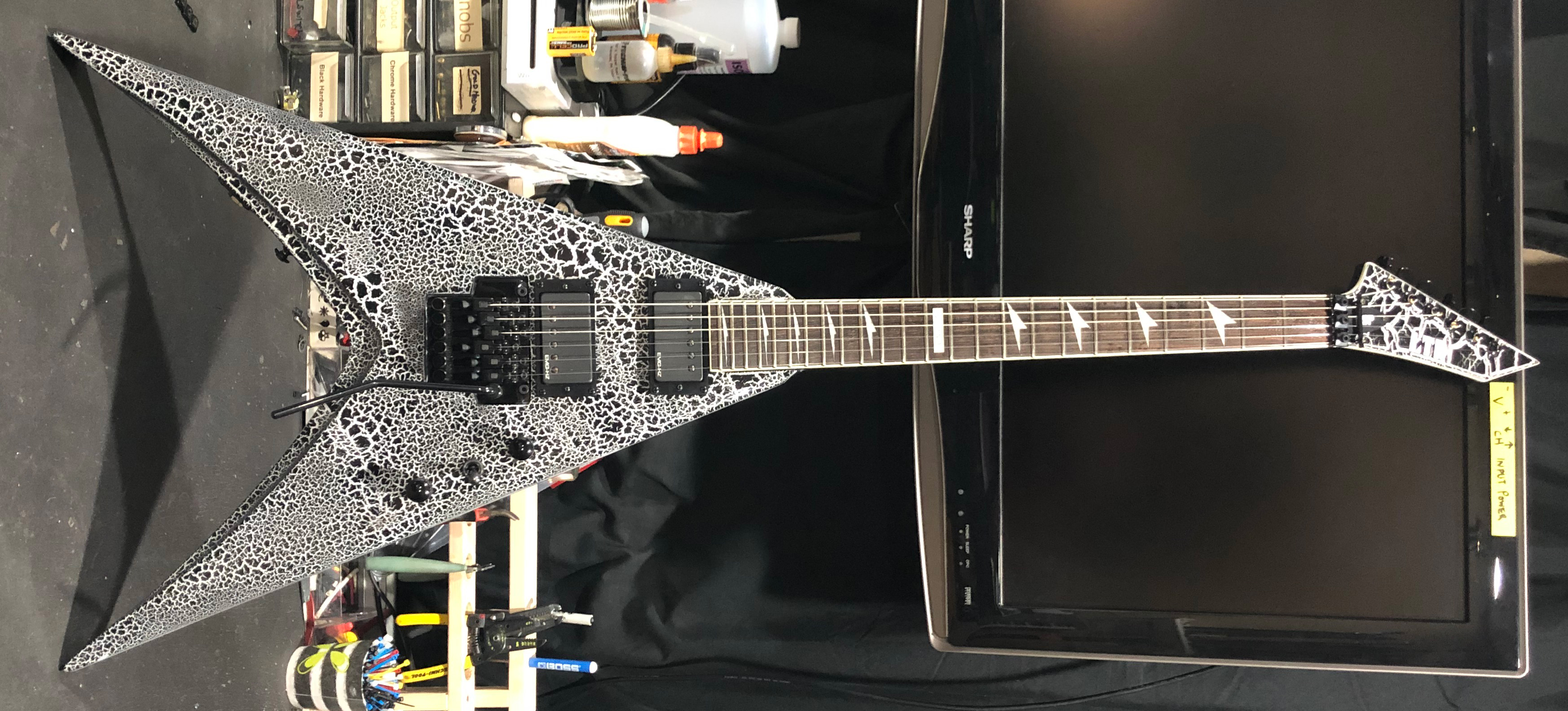 1992 Jackson EX Pro Rhoads w/ EMG 81-85 pickups, Iron Age LED Killswitch, Gotoh Battery box, White Satin w/ Red Splatter