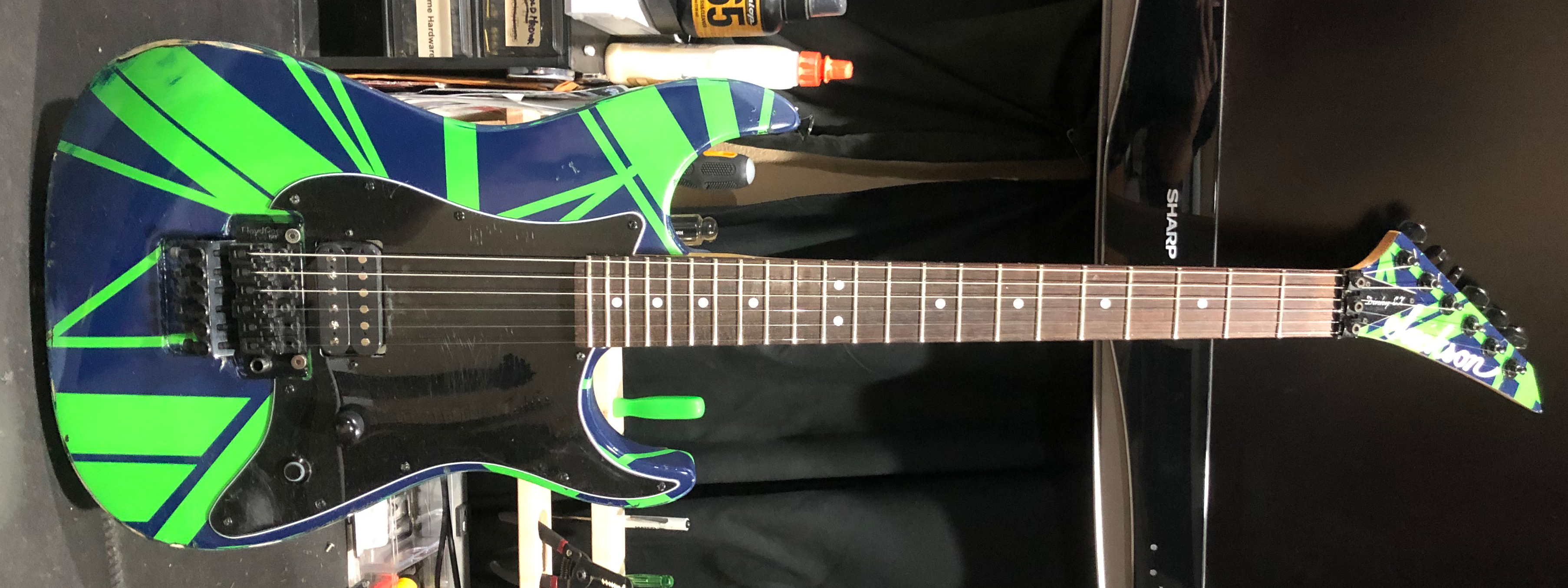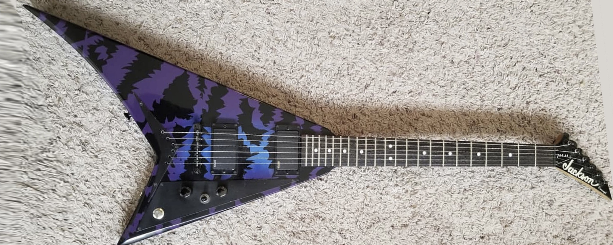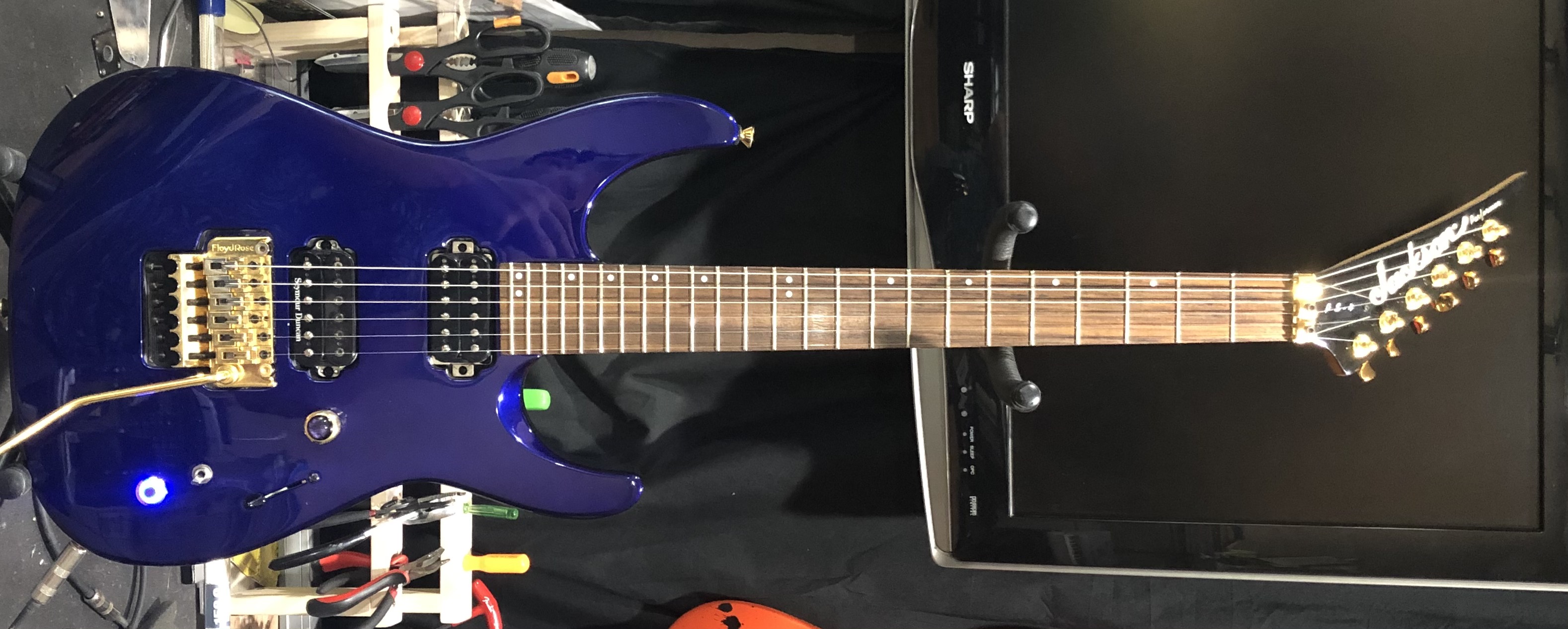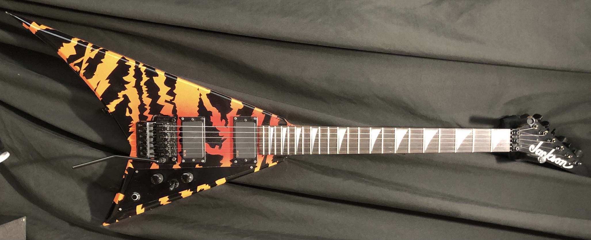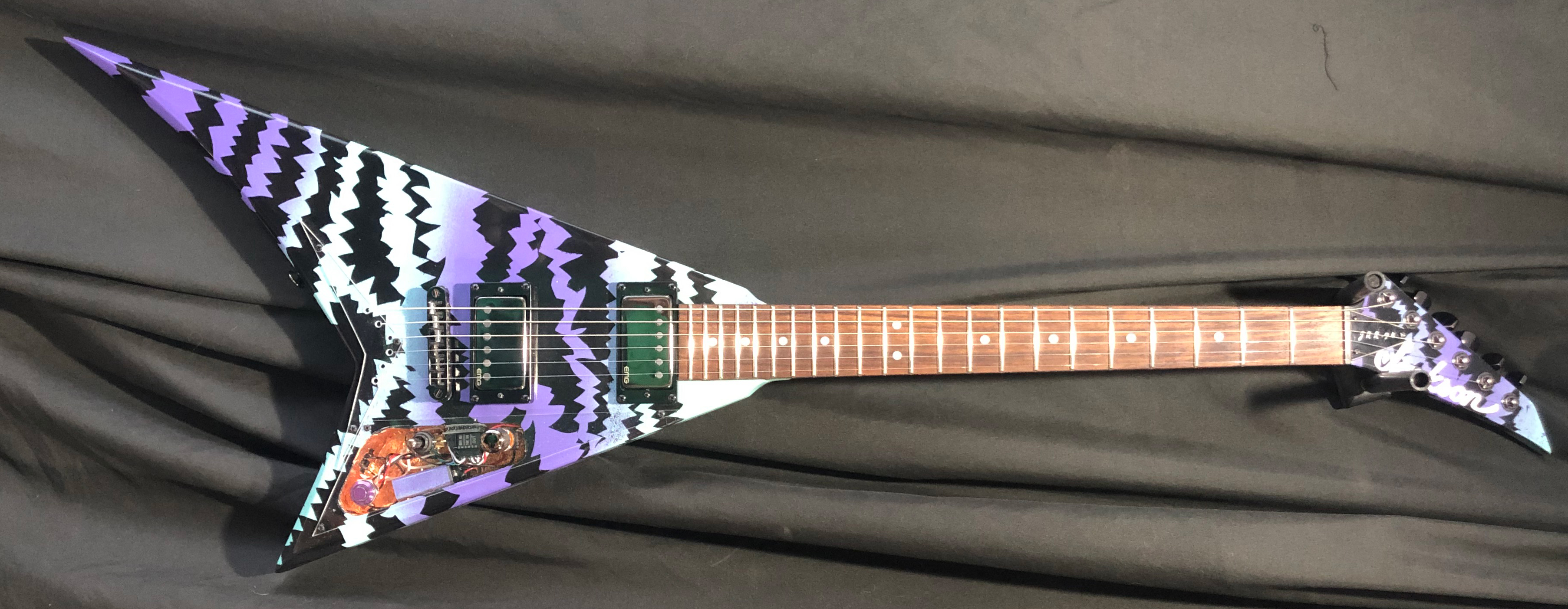 1992 Jackson EX Pro Rhoads w/ EMG 81-85 pickups, Iron Age LED Killswitch, Gotoh Battery box, White Satin w/ Red Splatter