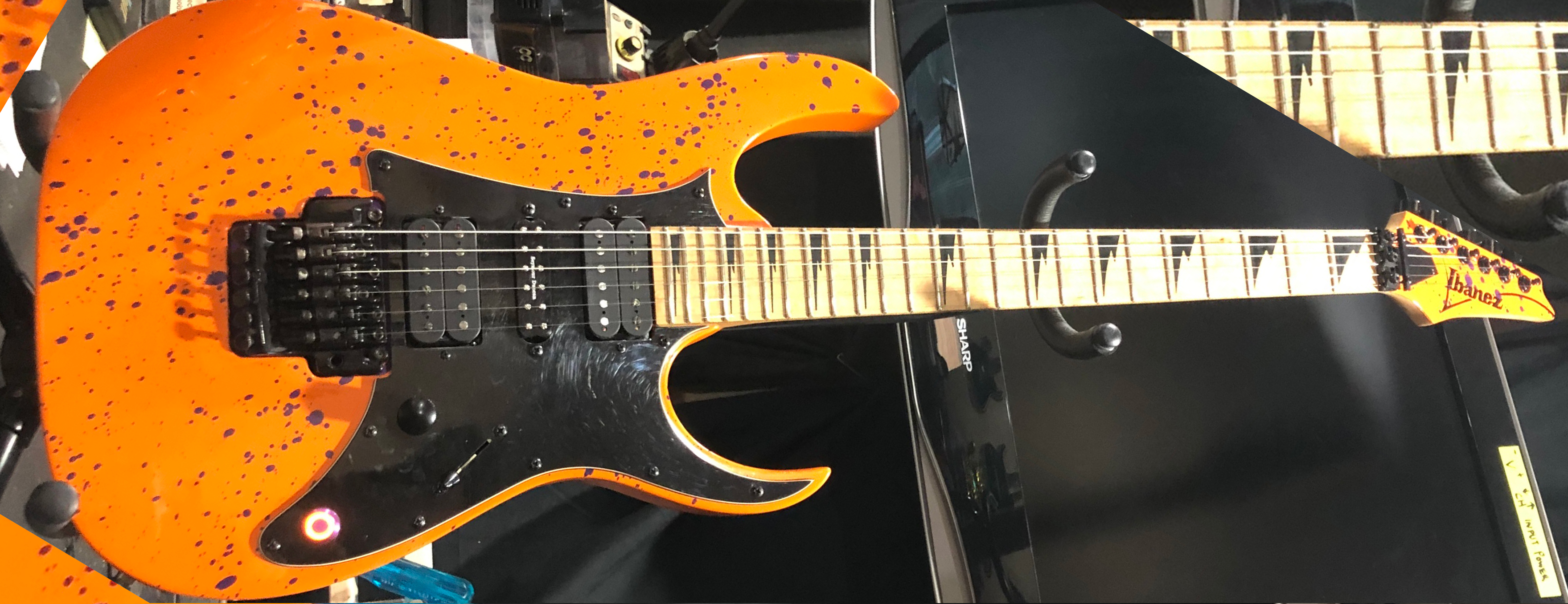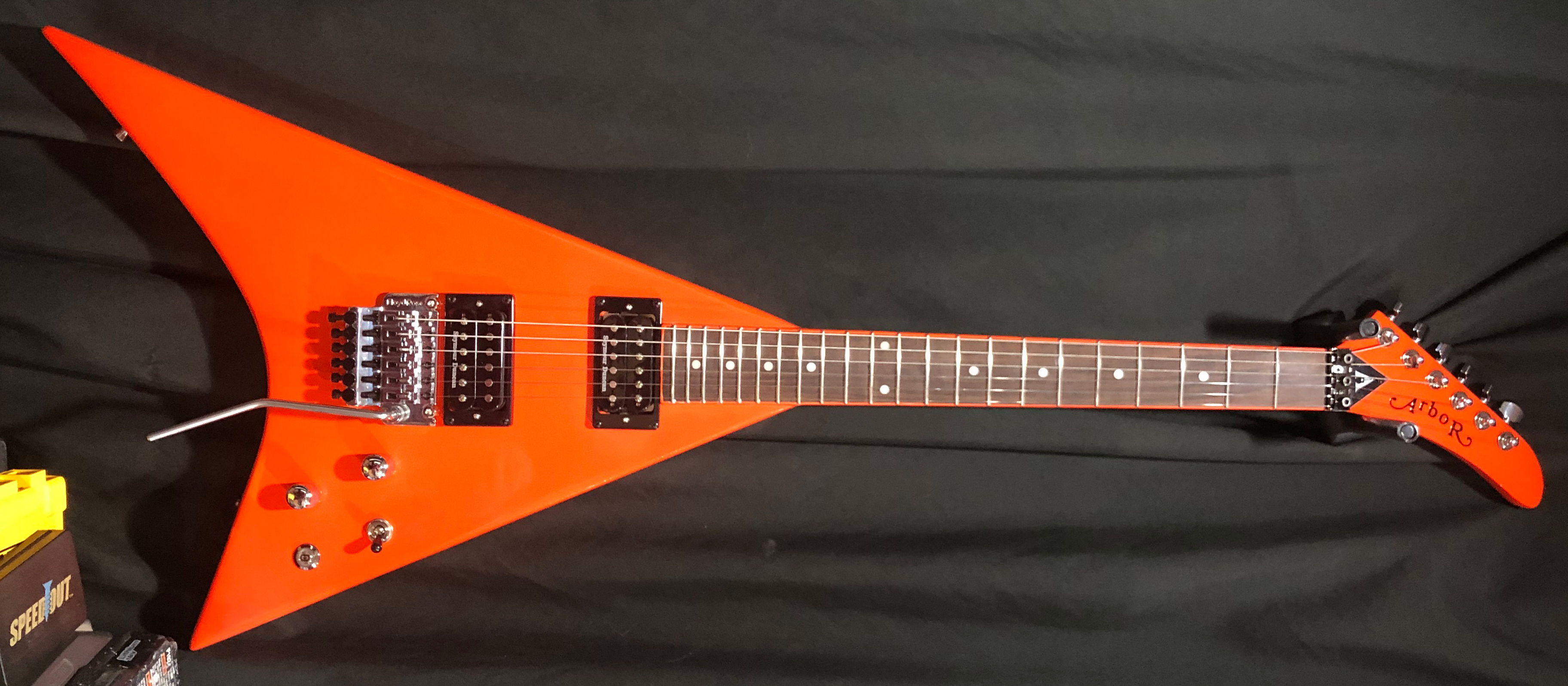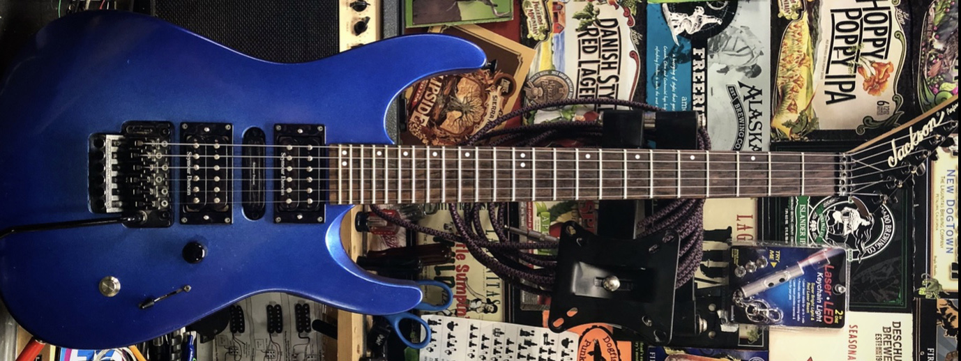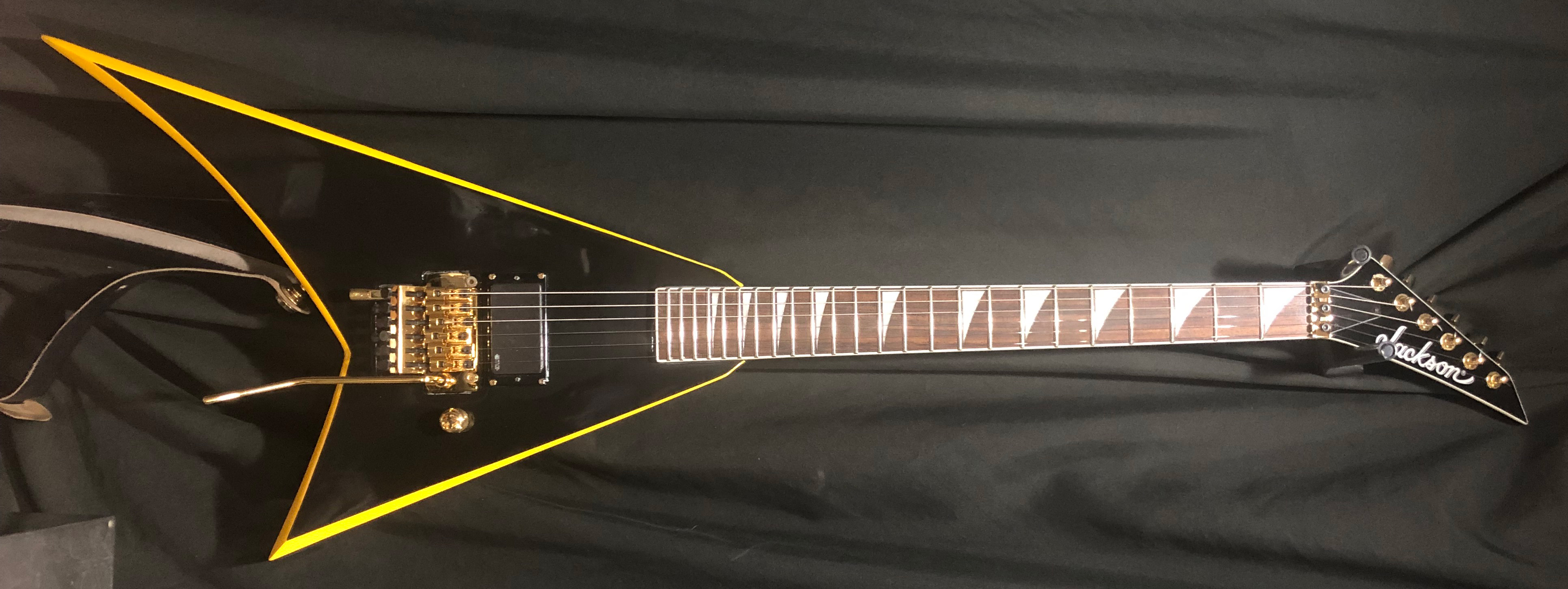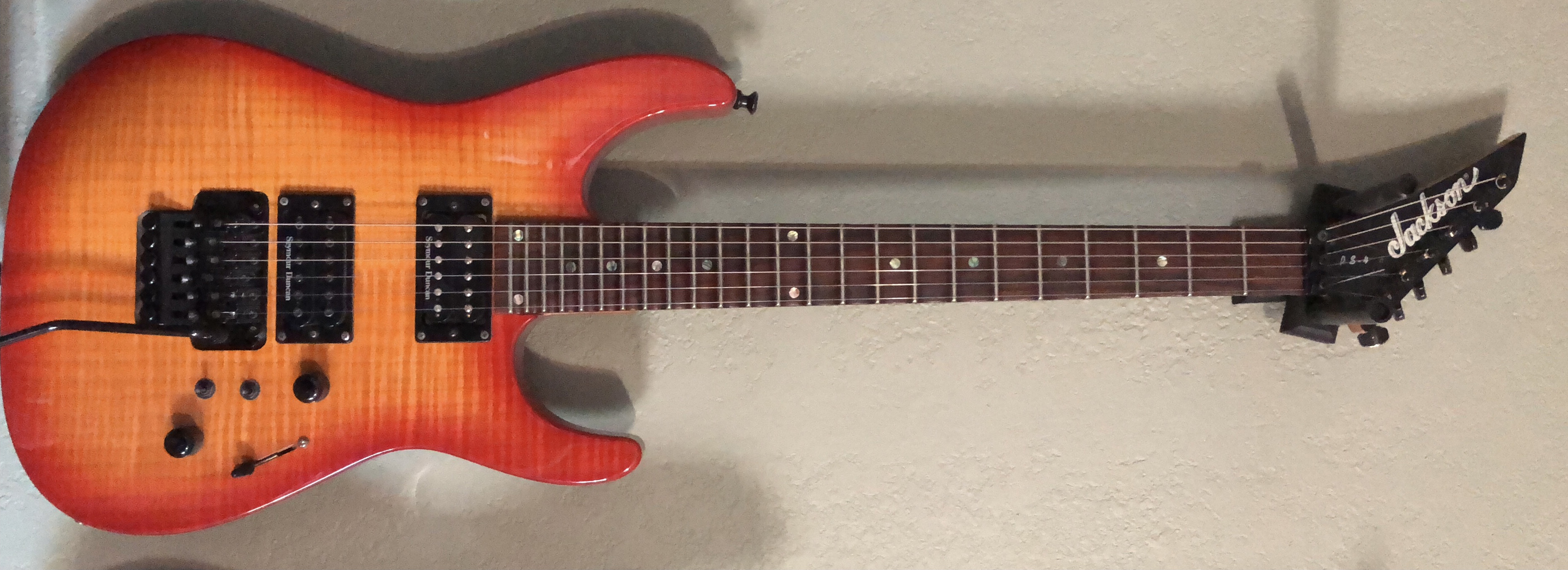 1992 Jackson EX Pro Rhoads w/ EMG 81-85 pickups, Iron Age LED Killswitch, Gotoh Battery box, White Satin w/ Red Splatter